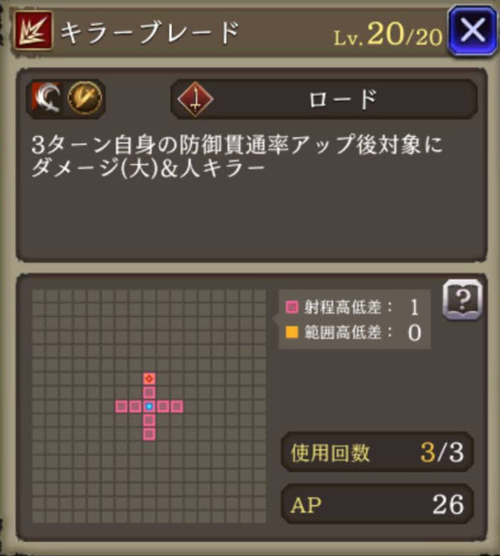 ![]() | 防御貫通率+30 人キラー25 | 2 | |