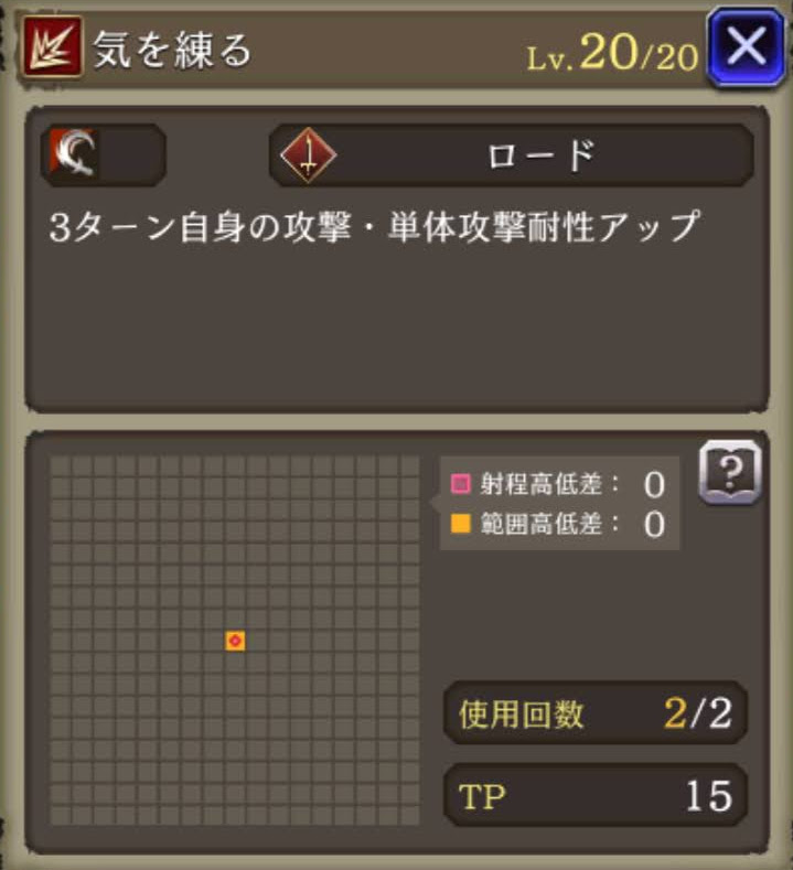 | ⇩MA3強化⇩ 味方の土属性ユニットのHP上限+10%・ドンアク耐性+25 自身の防御+15・Jump+1・刺突耐性+25・射撃耐性+10・ヘイトアップ+10 |