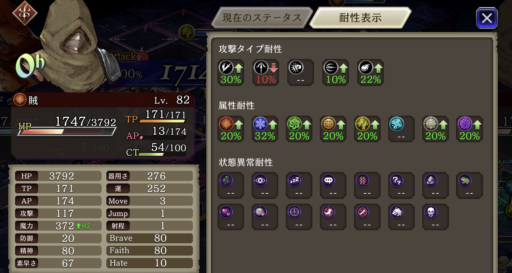 全体的にドンアク攻撃が多いので、耐性を持ったユニットや装備がオススメです。ボスのストップ攻撃も痛いのでストップ耐性も付けてます。