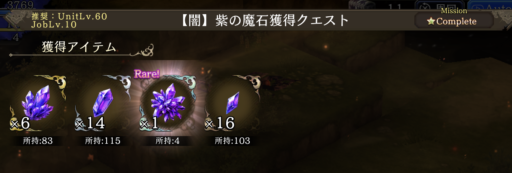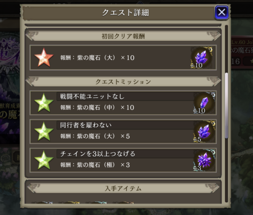 では「魔石獲得クエスト」の入手アイテムを見ていきます。
