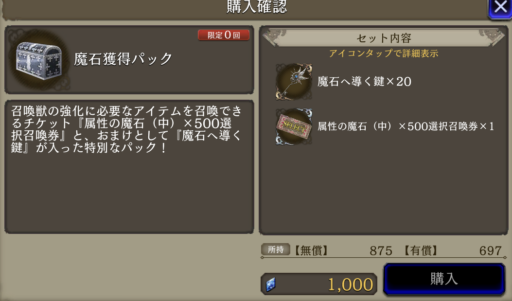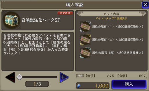 ▲ショップに並ぶ、「召喚獣強化パック」とどちらがお得か比較してみます。