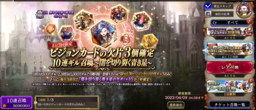 4/8~4/14分まで7日間、毎日最低10個ずつ欠片が手に入るギルガチャ