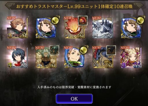 ![]() ▲一応こちらも2000石ですが引いておきます ![]() ▲こちらも大本命ジザが登場 迷うことなくリセマラ終了 |