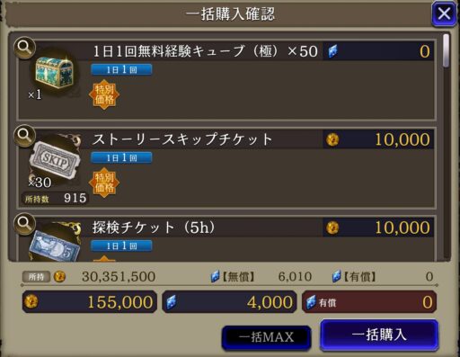 ![]() ▲こちらビギナーズショップには「育成に超お得」 なアイテムが格安で揃っている 1例⇩ ![]() ▲JobLv素材 普通に集めるとしたら1週間では集まらない量 ![]() ![]() ![]() ![]() ▲無料石&ギルで買えるもの全てでこの値段(4000石) ※全て時間を掛けさえすれば手に入るものなので 節約したい方は節約するのもOKですが、 とてつもない時間を費やすので全て購入がオススメです (有償石を使える方は有償石用アイテムも全て購入がオススメ) |