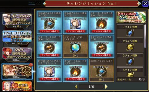 ビンゴをクリアしていきながら育成素材や召喚券、