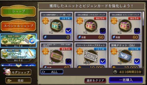 ![]() ビギナーズショップのスキップチケット購入などもお忘れなく! |