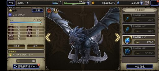 ![]() 早速召喚獣をLv50まで強化 強化石はチケット召喚からGET |