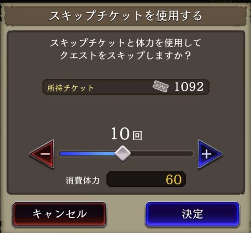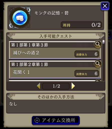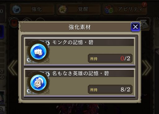 ![]() ▲今日はルシオの強化に挑戦 アビリティボードを開放するためには 覚醒とJobLv強化が必要 ![]() ▲中でも手間がかかるのが「JobLv強化素材集め」 消費が多く枯渇もしやすい ![]() ![]() ▲尚、これらの素材を集めたい時は 素材をタップすることで入手クエストまで飛べる ![]() ▲収集の際はストーリーをスキップチケットで消化すると 簡単に集められる (初心者期間7日間はドロップも2倍でオススメ) ![]() ▲10周分のアイテム報酬 |