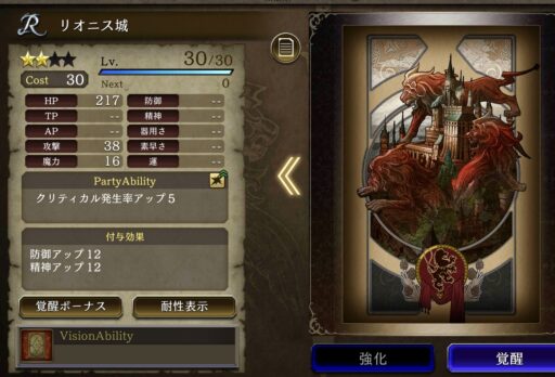 ![]() ▲ビジョンカードはほぼ無強化のまま (まだ未覚醒で強化する恩恵が少ないためギル・素材の節約中) |