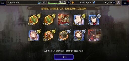 | SSSRで優秀なユニットが揃ってきたため セレクエ各#1クリア報酬(チャレンジミッション)の SSRユニットの欠片500チケットを使用 ![]() ▲雷のアリム ![]() ▲水のラマダ ![]() ▲闇のシャドウリンクス 限界突破したはいいが覚醒素材&JobLv素材が全然足りない為 育成は後回し(^^;) |