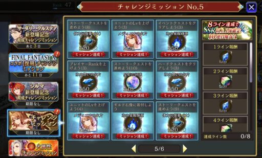 ![]() ▲チャレンジミッションも5枚目が終わり |