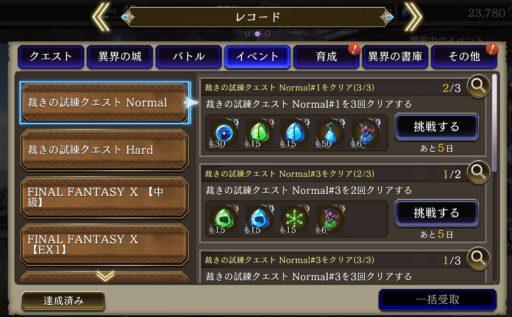![]() 「裁きの試練」レコードミッションの素材をもらうために それぞれ3回ずつクリア |
