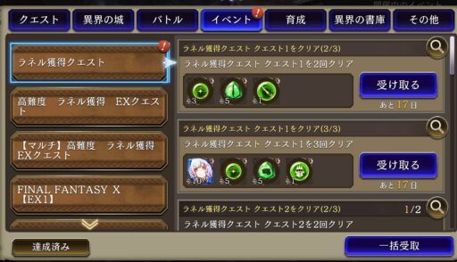 ▲クリア後は「達成済み」を確認して報酬をもらおう