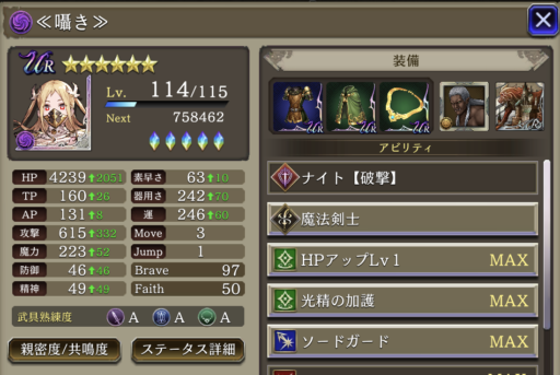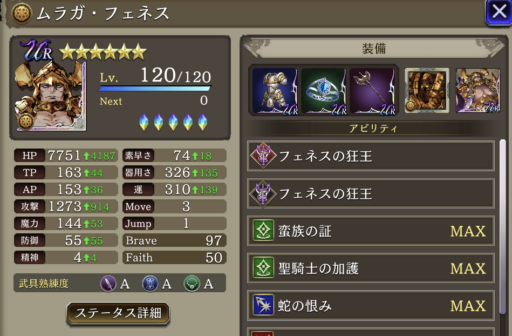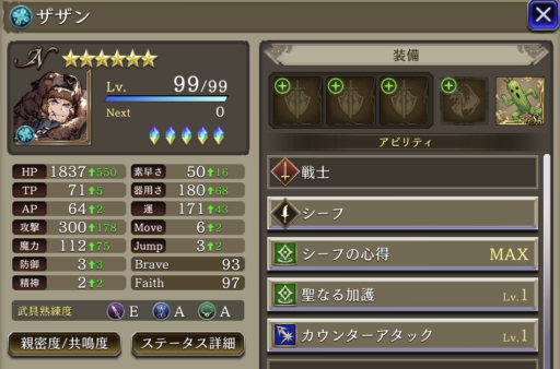 パーティアビリティは「斬撃+35」「攻撃+34%」です