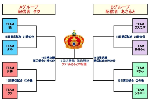 ・トーナメント表はこちらでランダムで作成し、 放送中お伝えします。