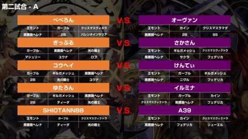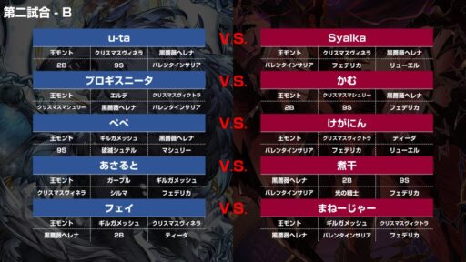 ・第二回以降は事前に出場者は6キャラを選定し、その中から編成を構築