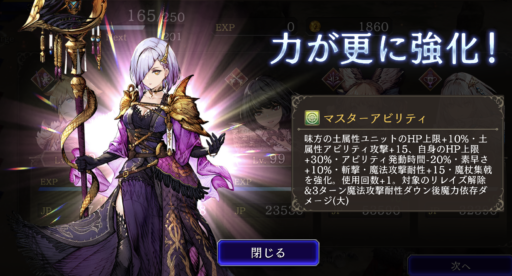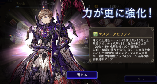 ![]() 味方の土属性ユニットのHP上限+10%・土属性アビリティ攻撃+15、自身のHP上限+10%、単体攻撃耐性+10 ⇩ ⇩ 味方の土属性ユニットのHP上限+10%・土属性アビリティ攻撃+15、自身のHP上限+20%、単体攻撃耐性+10、消費AP-30%、紫竜の護り強化(3ターン自身の防御貫通率+40) |