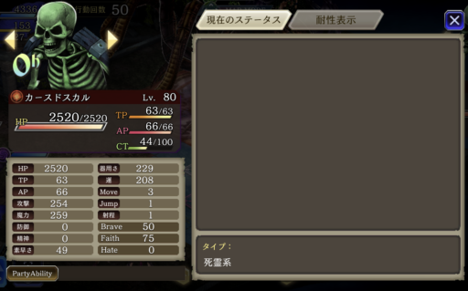 | ハードボスのステータス |