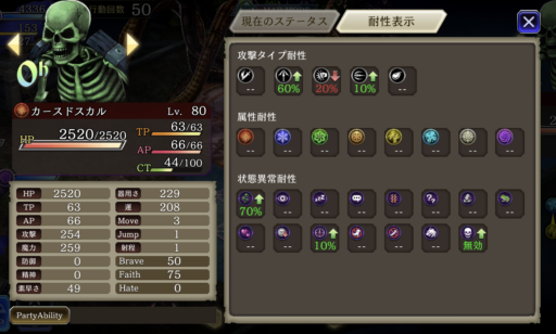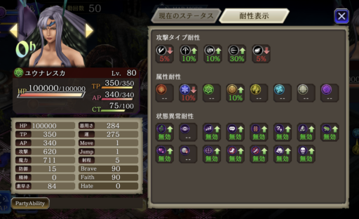 特に耐性を盛っていない印象。チェイン用のアビリティ「時間を盗む」「スピードブレイク」「スロウ」何でも効く。