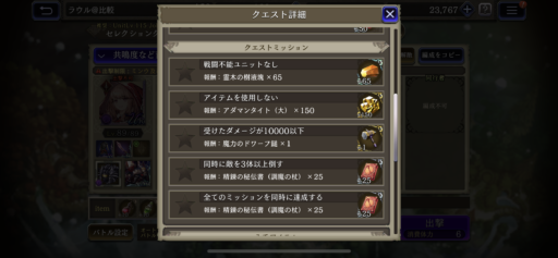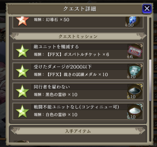 ②各クエストのミッションクリア