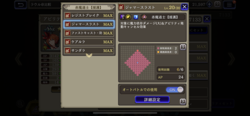 ※オートで思い通りの動きをさせるため、事前に素早さの調整、使用しないアビリティのOFFの設定を行っておきます。