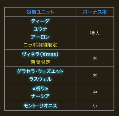 | ボーナス | ティーダ、アーロン、ヴィネラ(Xmas)、ラスウェル、グラセラ、ナーシア、モント |