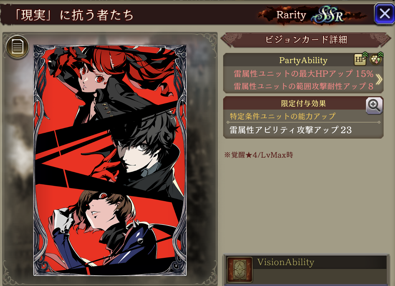 | 雷属性アビリティ攻撃アップ | 9 | 12 | 16 | 23 |