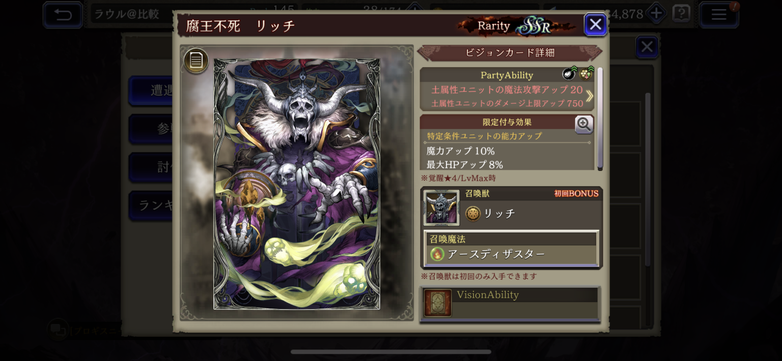 【FFBE幻影戦争】腐王不死 リッチの凸別ステータス/アビリティ