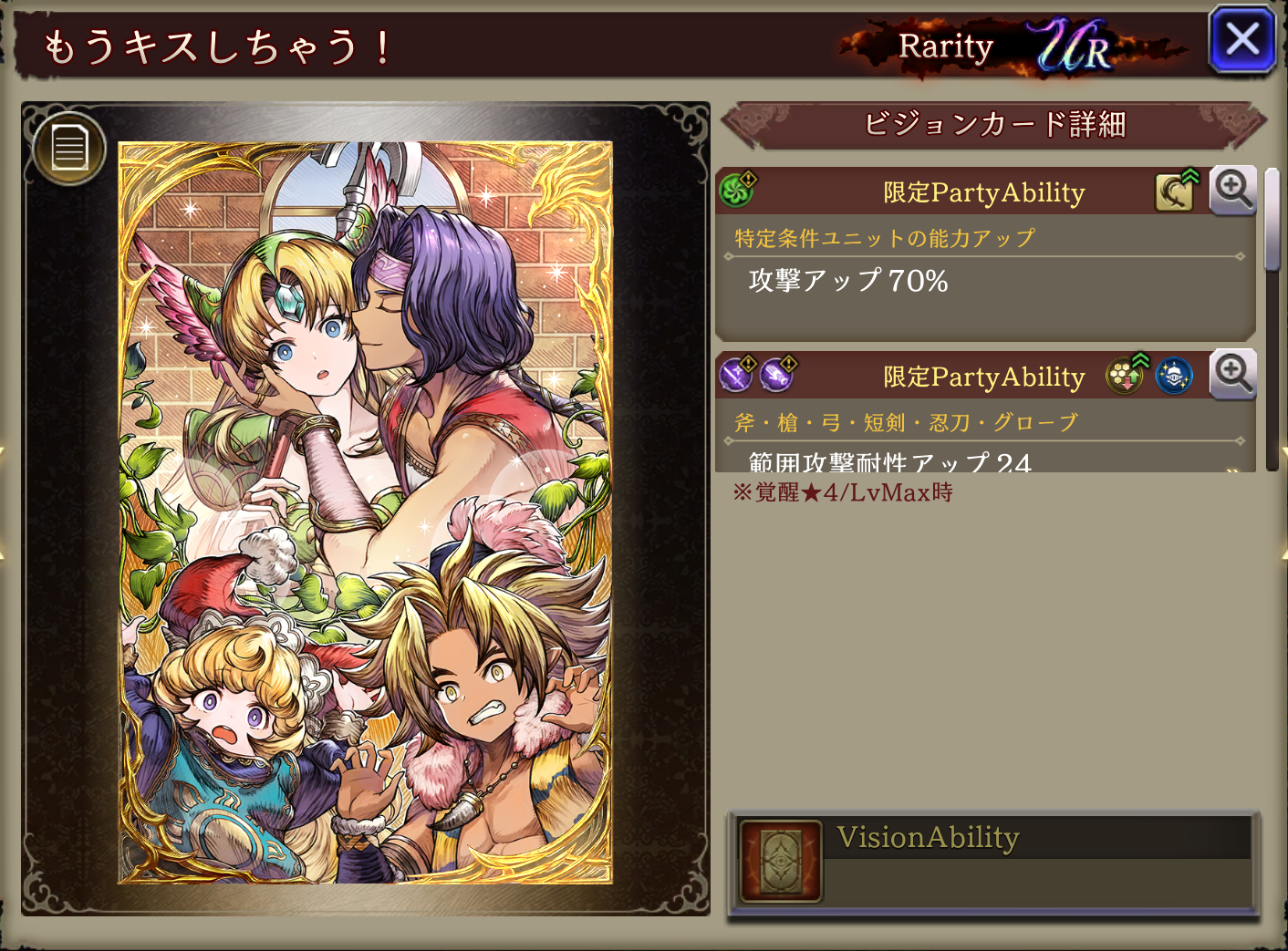 ![]() | ヴィストラール | 18 | SSR | 50 | 光 | 短剣 |