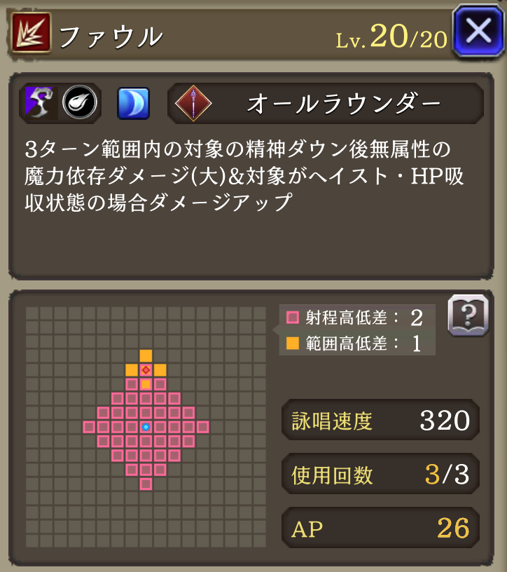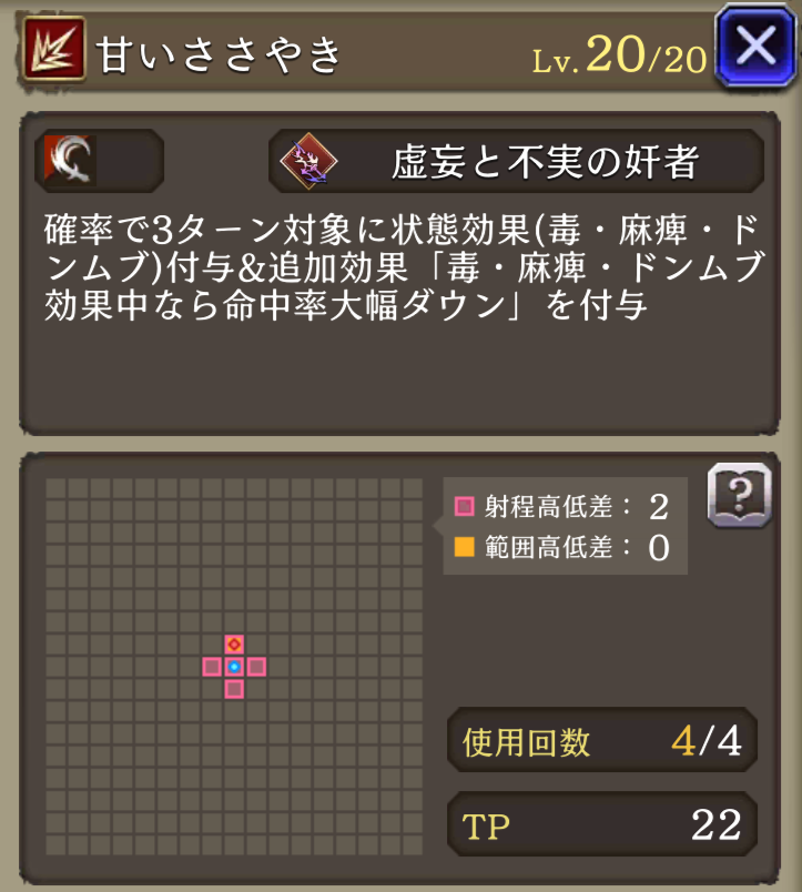 表の状態係数:0.25 = (自分のFaith+対象のFaith)×0.25 =状態異常付与確率