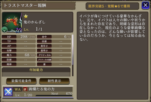 人々の願いと祈り | 魔力+30%、雷アビリティ攻撃+12 | 鬼女 |