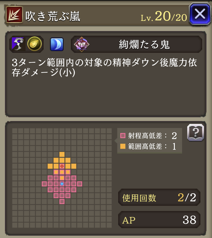 魔力+20% 範囲攻撃耐性+15 吹き叫ぶ嵐強化 精神ダウン強化 ダメージ(小)→(中)に変更 | 魔法系 アタッカー |
