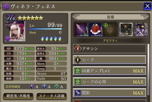 ※以下はマスターアビリティやボード全取得済みのステータスです。
