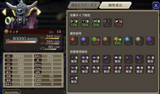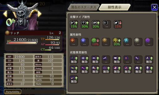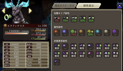 | 各種ステータスダウン攻撃◎ 有効 時間を盗む× 効かない 反撃で防御ダウン攻撃をしてくる |