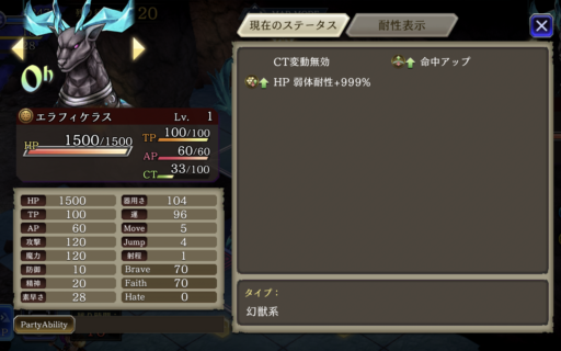 ![]() テュポーン | おすすめ 土キラー25% 風属性アビリティ攻撃UP25 |