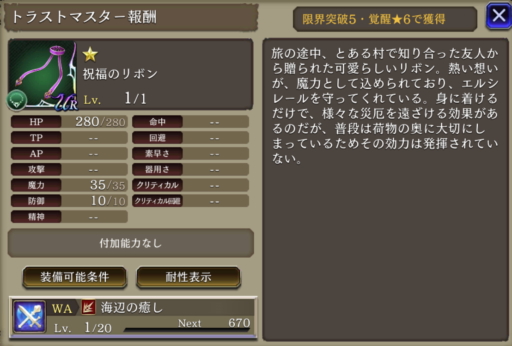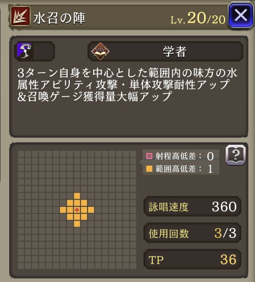 ![]() | 水アビ+25 単体耐性+25 召喚ゲージ獲得+100 | 15 | |