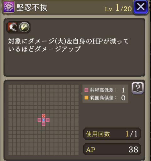![]() 自身のHP消費して3ターン攻撃+75% | 44 |
