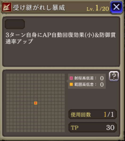 ![]() 3ターン自身にAP自動回復効果(5%)&防御貫通率+50 | 331 |