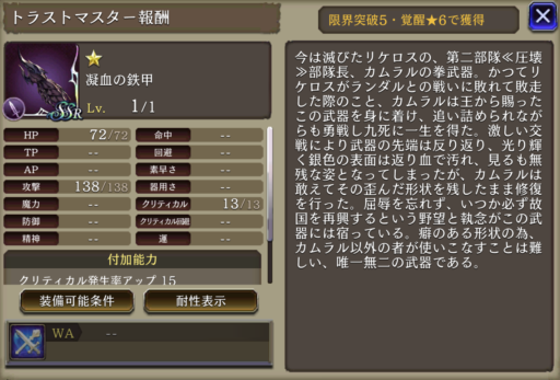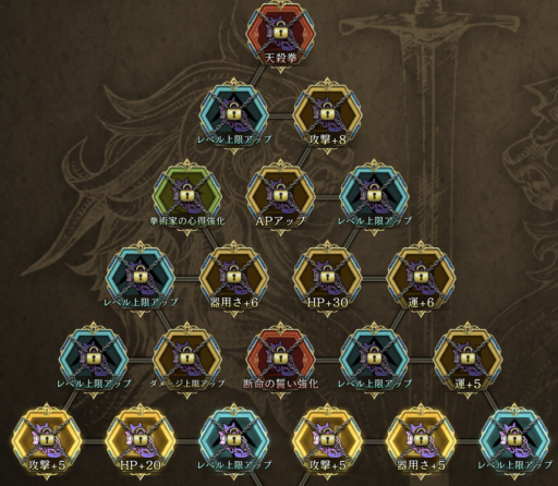 | 付加効果 | 最大HP+10% 獲得AP+30% 天殺拳を強化 |