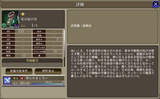 | HP | TP | AP | 攻 | 魔 | 命 | 回 | 器 | クリ | クリ回 | 運 |