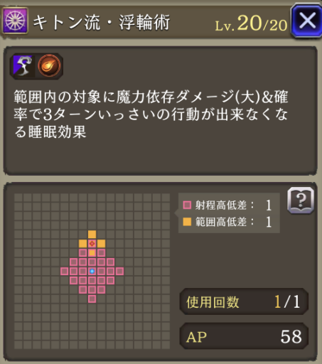 ![]() | 【EXラストアビ・夢幻】 範囲耐性25ダウン 斬撃・魔法攻撃力40ダウン 菱形範囲 | 13 | 5 |