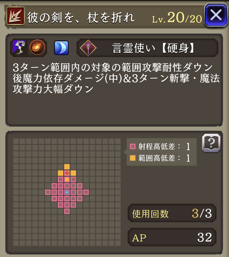 斬撃攻撃耐性15 範囲攻撃耐性15 ヘイトダウン3 彼の剣を、杖を折れを強化 菱形範囲に | 魔法系 アタッカー |