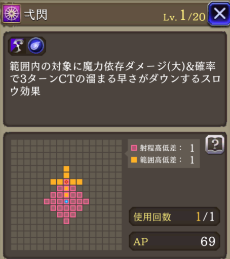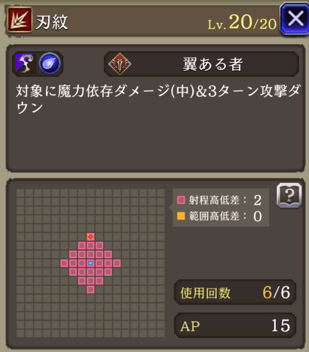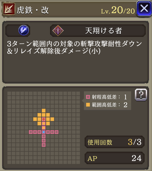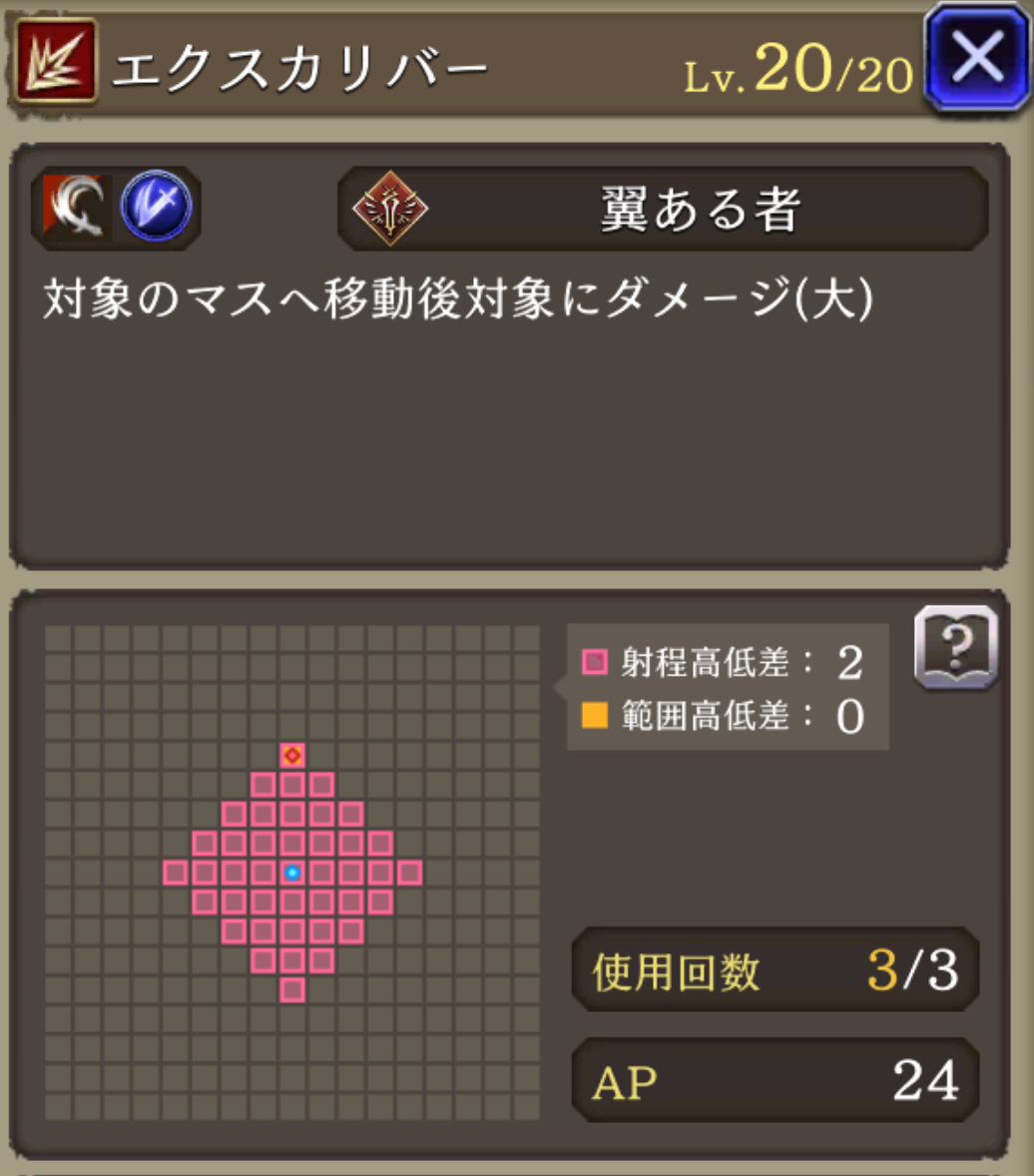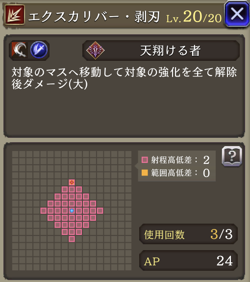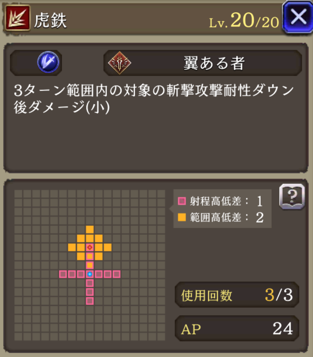 非ダメージ行動時AP+20、HP70%以上でガッツ効果