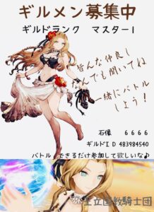 ※事前連絡なしで未ログイン7日程度、もしくはギルバト(基本 週5参戦)で不参加が続く場合は除名の対象となりますのでご了承ください。