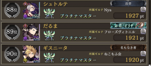 | Cloudさんのコメント 「崖上にジェーダン、レミューレです。 ロブトラ定理でジェーダンが落とされるので残りでどうにか立て直してました」 ちなみにCloudさんは37勝3敗の素晴らしい戦績でした! (今回2位相当?!) |