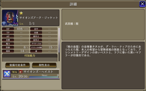| HP | TP | AP | 攻 | 魔 | 命 | 回 | 器 | クリ | クリ回 | 運 |