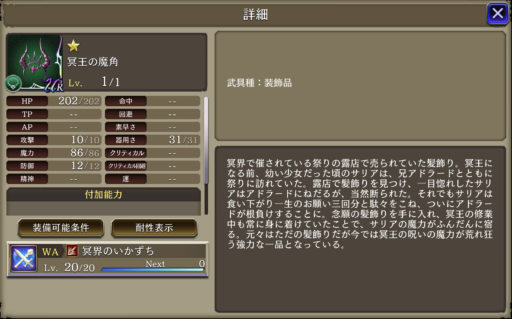 AP消費率20ダウン、治癒力+20、リアクション阻止率+30 「ハデスブランディッシュ」強化 攻撃範囲が広い程被ダメ軽減解除 | 魔法系 アタッカー |