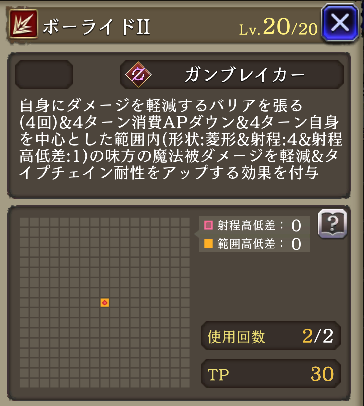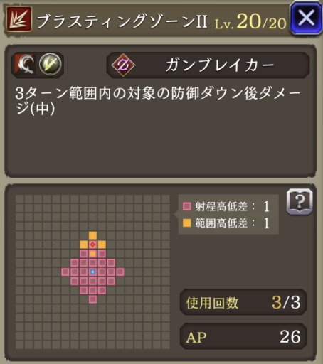 | JobLv19 強化 | 3ターン消費AP25%ダウン追加、消費HP無しに |