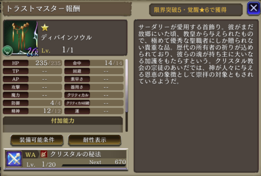 ![]() | 風属性アビ+30 弱体耐性+30 アビリティ短縮300 | 14 |