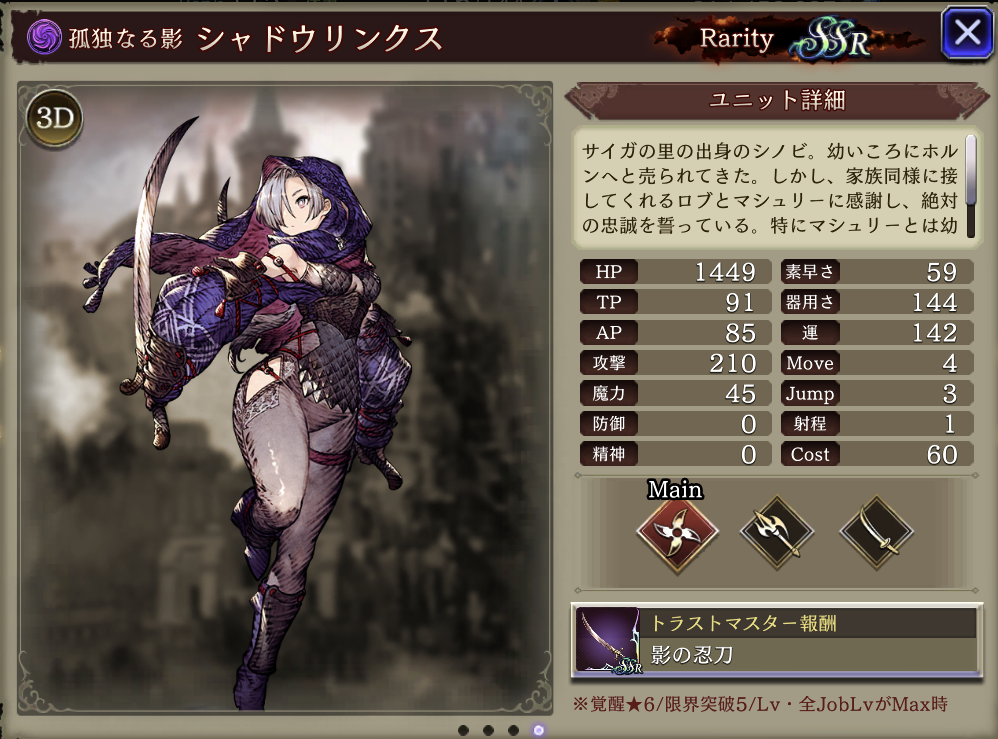 | JobLv19 影縛り強化 | 単体攻撃耐性30ダウン追加 |